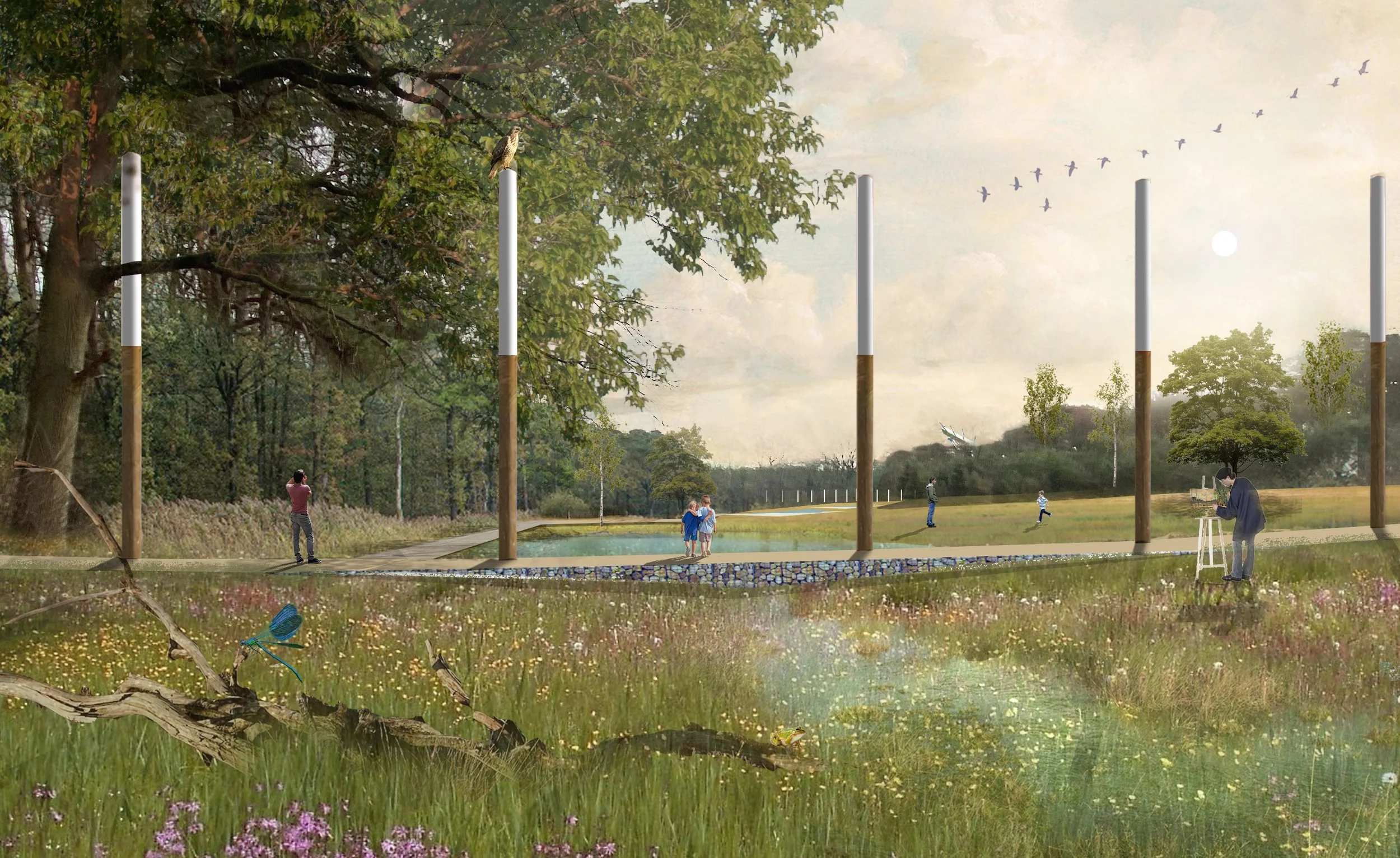 Landschapsarchitectuur is de basis van ons bureau. We ontwerpen robuuste groen-blauwe netwerken, landschapsparken, publieke ruimtes, productieve voedsellandschappen en tuinen die actief bijdragen aan een gezonde leefomgeving en tegelijk onze gevoeligheid voor schoonheid niet onberoerd laten. Door fundamenteel met de natuur te ontwerpen, creëren we levende, adaptieve ecosystemen die water bufferen, hitte temperen en de lokale biodiversiteit alle ruimte geven om te floreren.