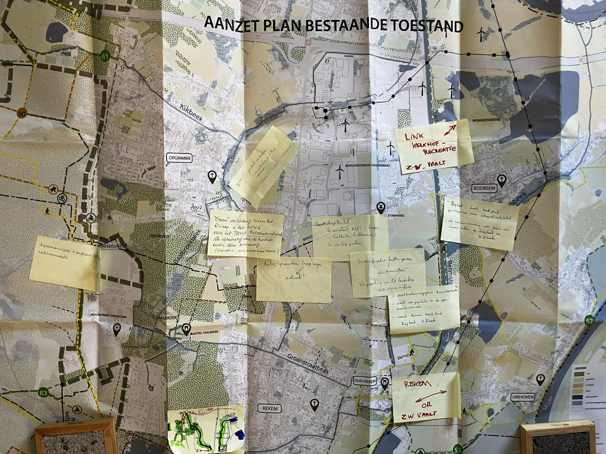 Tijdens het ontwerptraject onderzoeken we hoe de open ruimte tussen Rekem en Opgrimbie toekomstgericht open en versterkt kan worden aan de hand van enkele ruimtelijke strategieën.